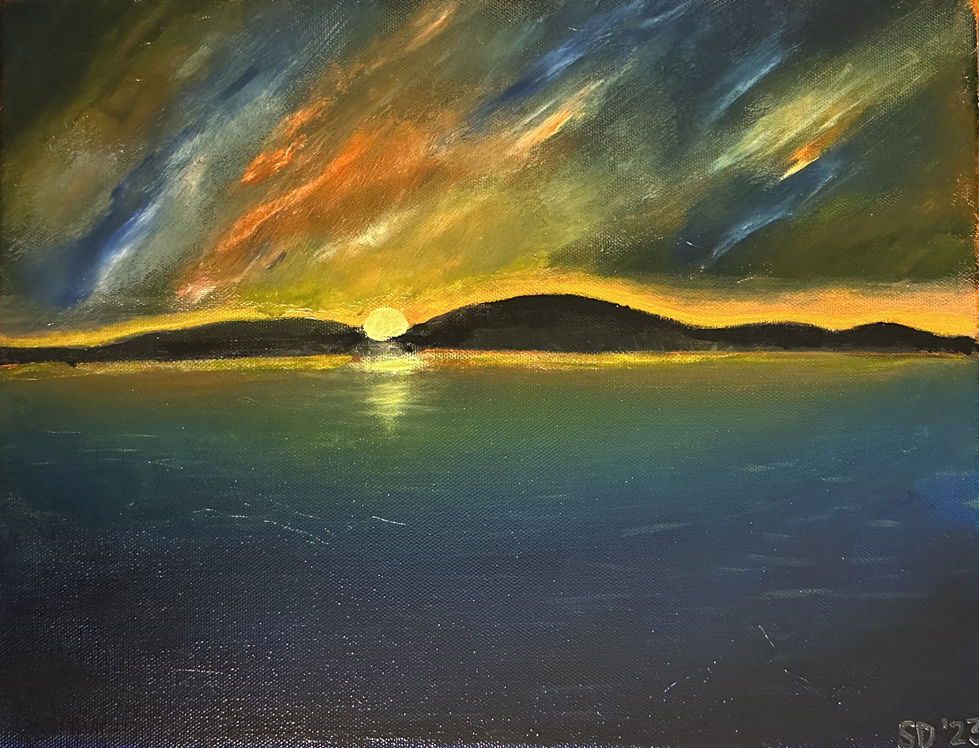 A collection of paintings capturing the beauty of nature, from misty paths to stormy seas and colorful sunsets.